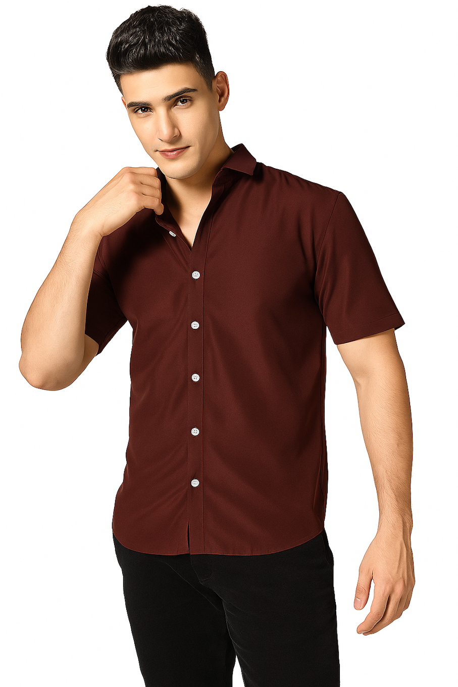 Mens Casual Shirt-Maroon (Size-L)
