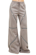 Details-casual wide-leg pants, Elastic/drawstring waist, multi-zipper design