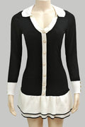 Fashion sweater dress, long sleeves, V-neck, front button look, Ribbed cuffs and hem