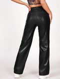 Details- Faux leather and slim straight legs elevate the casual, Zip fly with button closure, four pocket style slightly flared hems